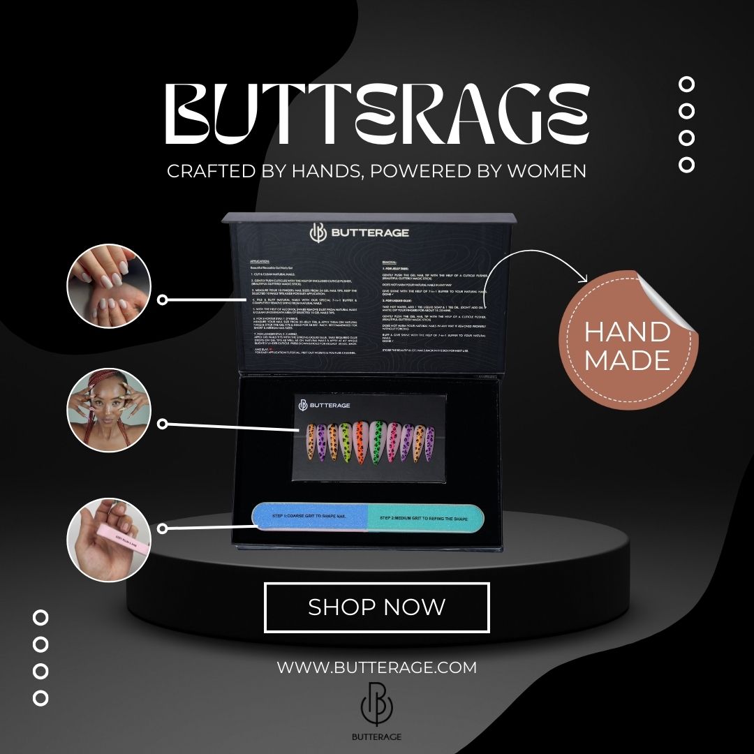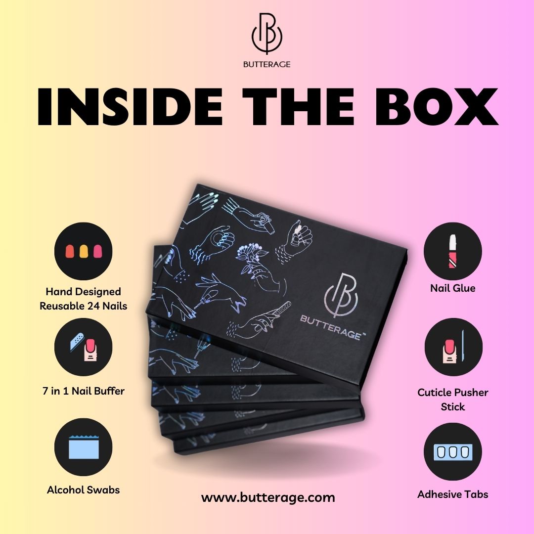 At Butterage, we believe in ensuring a perfect fit for everyone. That's why we provide a set of 24 nails in each pack, Standard in size.